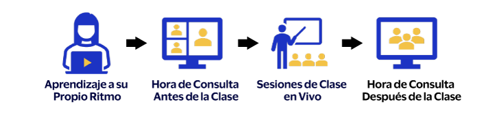 Nuestro nuevo modelo de aprendizaje combinado ofrece la flexibilidad del aprendizaje a su propio ritmo combinado con la participación interactiva de sesiones en vivo dirigidas por instructores, brindándole una experiencia de aprendizaje rica e integral.