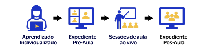 Nosso novo modelo de aprendizado misto combina a flexibilidade do aprendizado individualizado com o engajamento interativo de sessões ao vivo ministradas por instrutores, proporcionando a você uma experiência de aprendizado rica e abrangente.